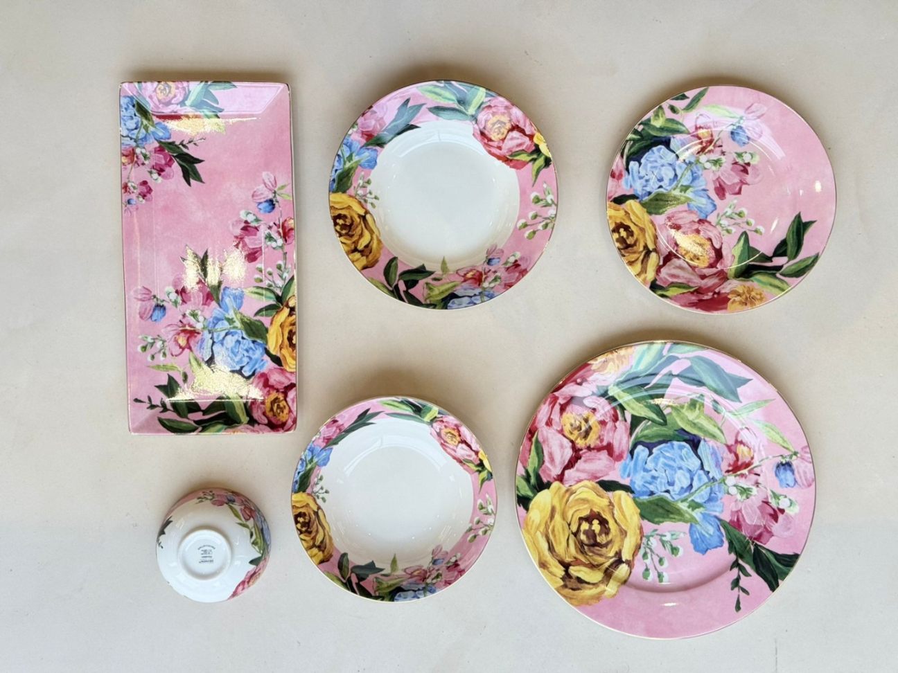 Bloomscape Teal 23Pcs Dinner Set 6 Dinner Plates 27cm 6 Salad Plates 20.5cm 6 Katori Bowls 10cm 2 Deep Serving Bowls 18cm 2 Shallow Serving Bowls 20.5cm 1 Rectangular Platter-31.5×15.5cm