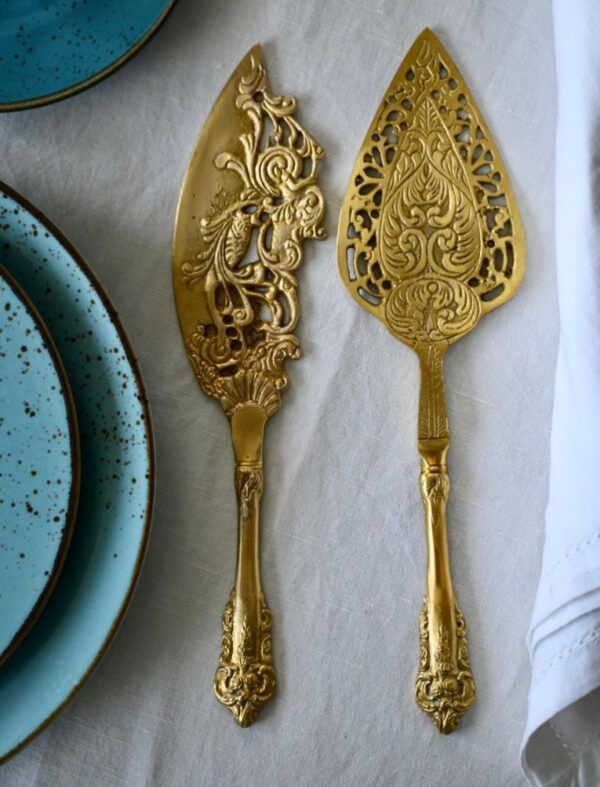 Cake Knife & Server Set Glossy-Gold” 27cm