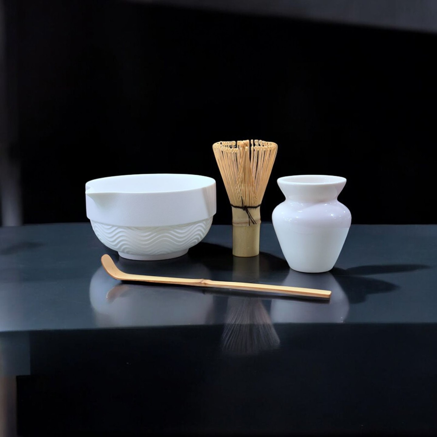 CERAMIC MACHA TEA SET (2 CERAMIC BOWL + 2 WOODEN SPOON) Set of 4