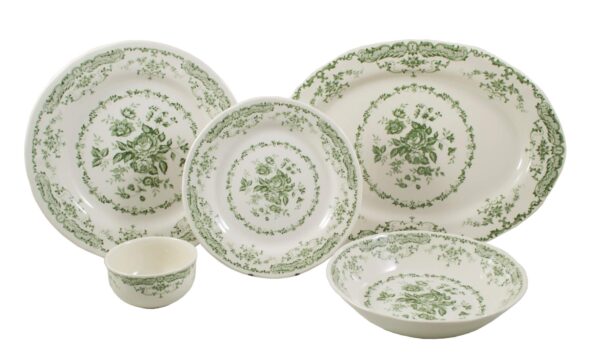 LS LUXURIOUS CAMILLE DARK BLUISH GREEN 28 PCS DINNER SET 6Pcs DINNER PLATE 26.0CM 6Pcs SALAD PLATE 20.7CM 1Pc OVAL PLATTER 35.5CM 1Pc SALAD BOWL 23.7CM 2Pcs SIAM RICE BOWL 20.3CM 12Pcs ROUND BOWL 370ML
