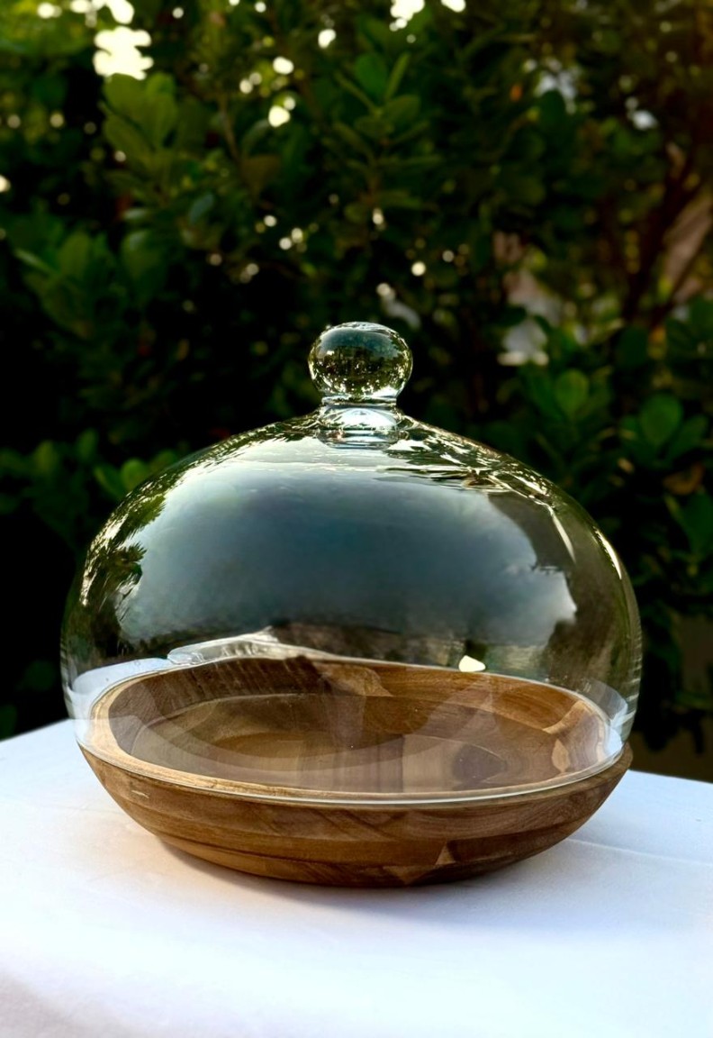 LS LUXURIOUS Cynthia Wooden Bowl with Dome Wide 1Pc Dome H:25.5CM Dome Dia:28.5CM Wooden Dia:29.5CM Wood Bottom:15.5CM