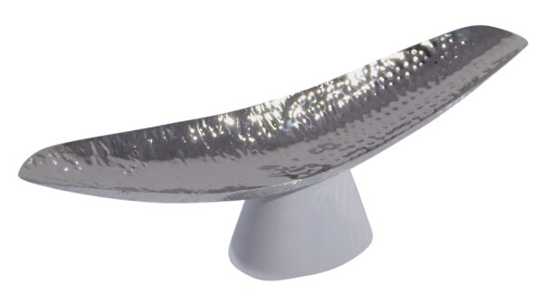 LS-LUXURIOUS Iron Hammered Finish White/ Nkl Big Pedestal Platter Length-53 Breadth-13 Height-15