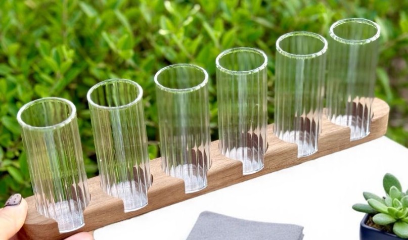 LS LUXURIOUS Komos Shot Glasses on Paddle Set 6Pcs Glass Glass H:9CM Wooden Base Dia:29×3.5CM 6Pcs Glass 60ml