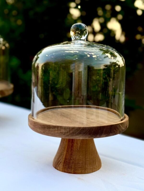 LS LUXURIOUS Melrose Dessert Stand Small 1Pc Dome H:24.3CM Dome Top:16CM Wooden Dia :17.5CM Wood Bottom:9CM
