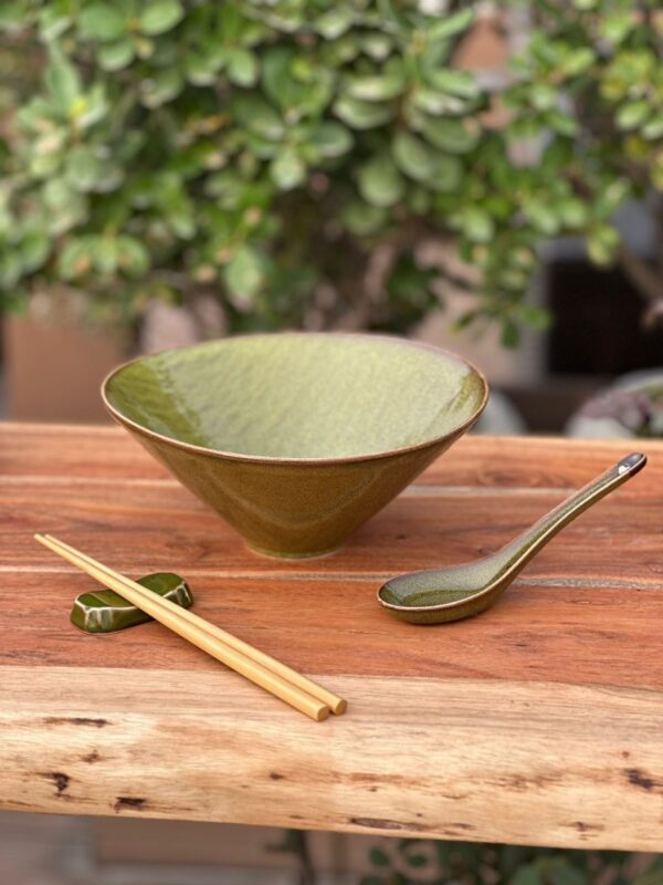 Pavo Real Green Noodle Bowl With 2Pc Chopsticks, 1Pc Spoon & 1Pc Chopstick Stand .